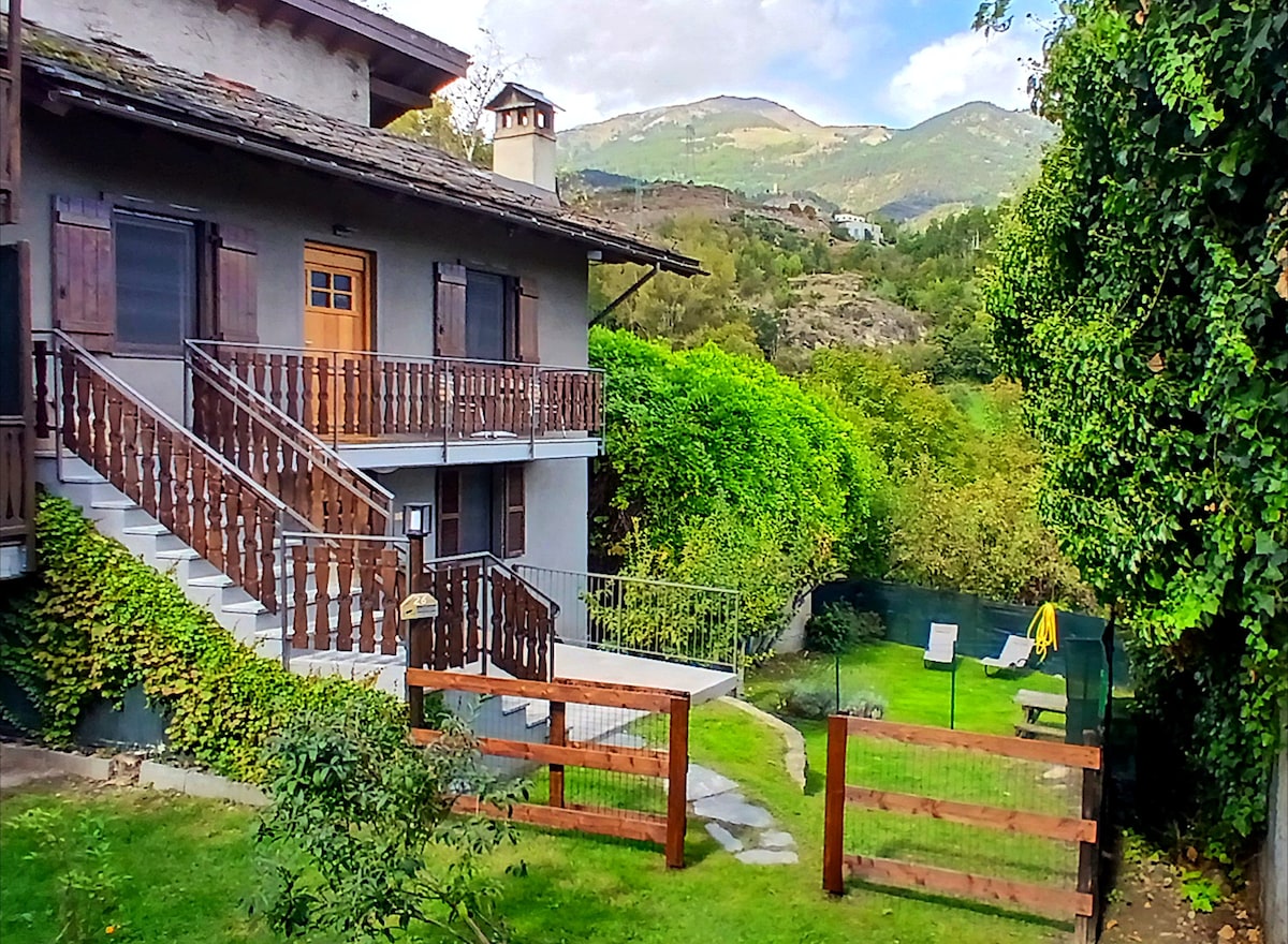 Casa Vacanze Monica's house ligger 10 minutter i bil fra Aosta centrum, 5 minutter fra motorvejsafkørslen, strategisk beliggenhed for adgang til skilifte, vandreture i bjergene, besøg på slotte og Aosta centrum. Lejligheden har 5 senge, fuldt udstyret køkken, 2 soveværelser, 2 badeværelser, stue med pejs. Altan. Gratis Wi-Fi Gratis parkering, garage til bil/motorcykel/cykel og ski. Legeplads i nærheden. Alle faciliteter 300 meter væk.