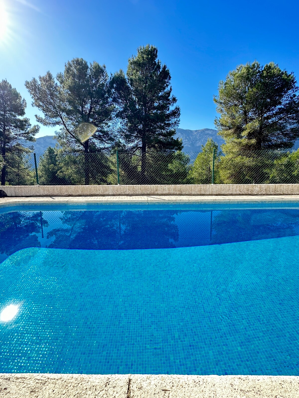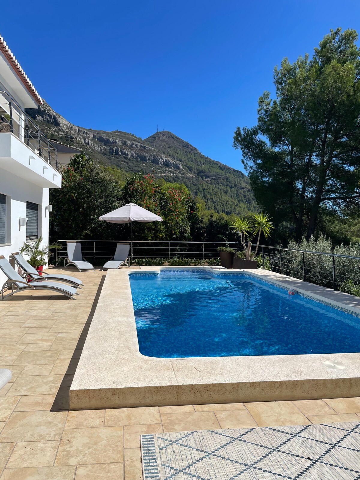 "The"The Gem" er præcis det !Chalet "The Gem" med pool fantastisk udsigt over bjergene Det er en specialbygget træhytte med 3 soveværelser, med privat swimmingpool og omfattende udendørs haveområde, beliggende i en rolig grøn dal med fantastisk udsigt over bjergene og fungerende frugtlunde, men alligevel tæt på Spaniens bedste blå flag strande. Det er det perfekte tilflugtssted til en ferie fra det hele. Alle moderne faciliteter ligger kun tre minutters kørsel væk i den søde, traditionelle spanske by Villalonga.