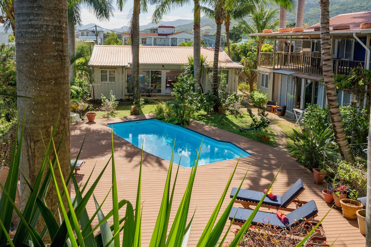 Denne rolige lejlighed ligger i bunden af vores familiebolig og tilbyder en venlig og autentisk oplevelse. Nyd nærheden til stranden (7 min kite spot/vind) og den afslappende atmosfære gamle fiskerby . Denne individuelle bolig har wi-fi (fiber 100 Mbps), skrivebord, havudsigt og en lu frodig med pool (fælles). Der er flere aktiviteter i nærheden såsom kitesurfing, windsurfing, wakeboarding, rideture, Chamarel , Casela park, delfinsightseeing...