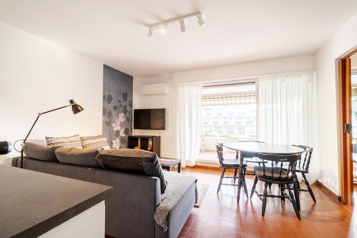 ⛱ Hyggeligt studie, fuldstændig renoveret i en meget rolig og behagelig bolig ⛱ ▸ 3 minutter fra stranden med havudsigt fra balkonen Privat, indhegnet og sikret▸ parkering: mulighed for at parkere 2 biler ▸ Fuldt udstyret: Wi-Fi, aircondition, TV, vaskemaskine ▸ Sengetøj: lagner, håndklæder, tæpper ▸ I nærheden af butikker og restauranter (Lidl, Super U, bageri, tobak, ...) Fleksible ▸ afgangstider ▸ Ideel til 3 personer (2 voksne & 1 barn)
