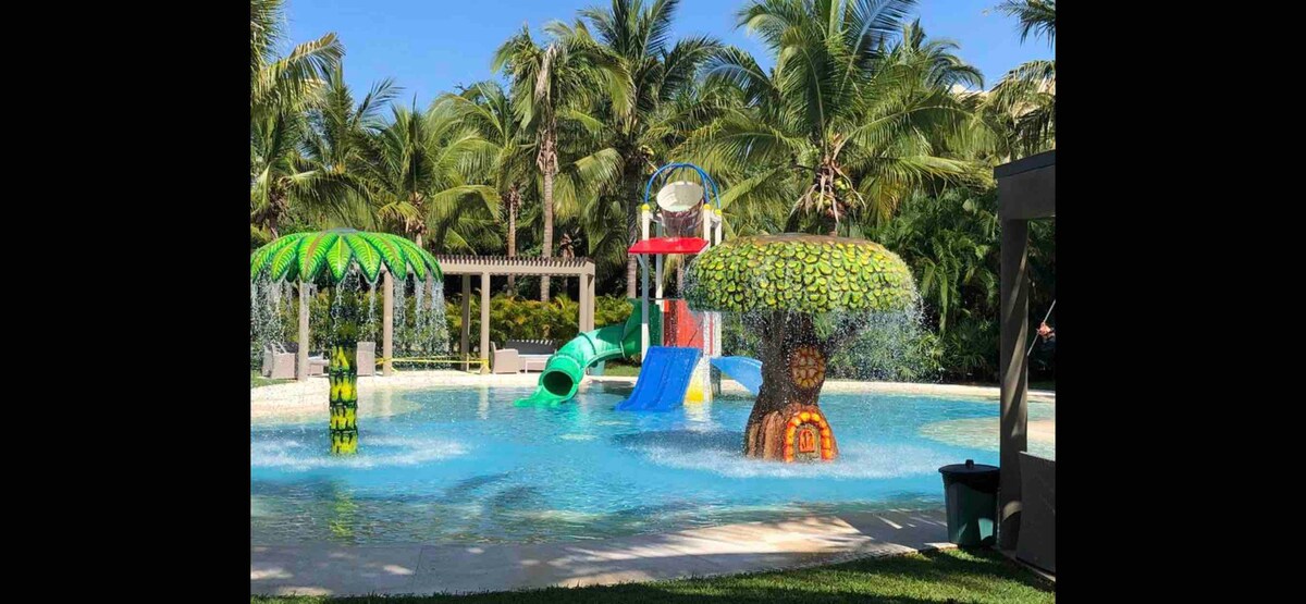 Udstyret lejlighed til 6 personer i Mayan Lakes lejlighed (Vidanta) Pool: liggestole i vandet, plaskebassin og områder til solbadning lige foran tårnet. Gratis klubhus: tennisbaner, paddle og pickleball, fitnessrum, dampbad, en anden pool, restaurant Efter køb af armbånd i receptionen på Mayan-hotellet har du adgang til hotellets strand, Mayan Palace-poolen og børnebadelandet🌴☀️. 🏡 To soveværelser 🛁 2 badeværelser Lejlighed med grønne områder, sø (kajak), vandrestier