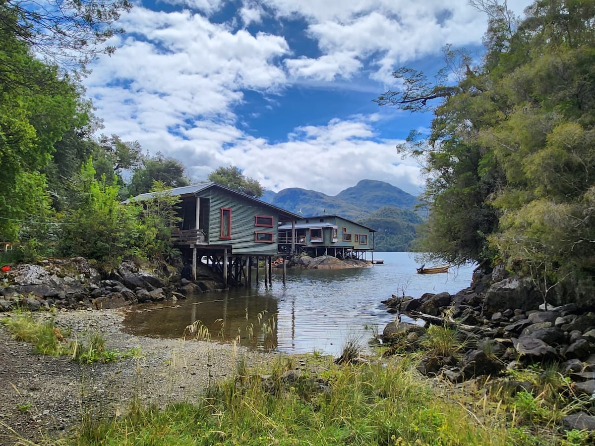 Hytte beliggende i bjergene med en smuk udsigt over fjorden, få skridt fra landsbyen, butikker og lokal mad, ideel til trekking, vandreture, hængende gletsjer, forskellige varme kilder og sejlads. Vejparkering Trapper er ikke egnet til personer med nedsat mobilitet Solpaneler og kildevand Adgang ad søvejen: Pram fra Puerto Montt -Chaiten-La Junta-Puyuhuapi, ca. 10 timer Adgang til land: Balmaceda-Coyhaique-Puyuhuapi Lufthavn, ca. 4 timer