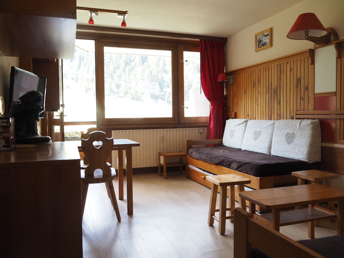 Renoveret hybel på 17m2, ideel til 2 personer, men kan rumme 4 personer Den har 4 senge, en dobbelt sovesofa i stuen, og 2 foldesenge i entréen 2 minutter til fods fra skiliftene (150 m) og tæt på alle butikker, en gratis shuttlebus stopper lige nedenfor boligen Lejligheden har opvaskemaskine, kaffemaskine, brødrister og kedel, samt et skiskab Sengetøj, håndklæder og rengøring er inkluderet Gratis Wi-Fi