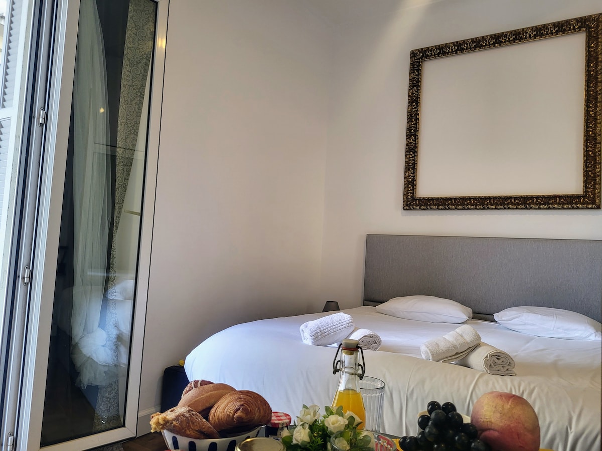 Promenade des Anglais, den mest charmerende strandpromenade på den franske riviera, ligger lige bag bygningen, L2 Tram foran. Den kører fra lufthavnen (9 stop mod vest) til Place Garibaldi, Nice Old Town og havnen (4/5 stop øst). Nyrenoveret af vores to talentfulde arkitektvenner :) Dette minimalistiske fristed med ro, komfort og lys har eksklusive faciliteter: aircondition i alle værelser, 1 GIGABIT fiberinternet, et lækkert skrivebord, fuldt udstyret køkken og solnedgange fra terrassen :(