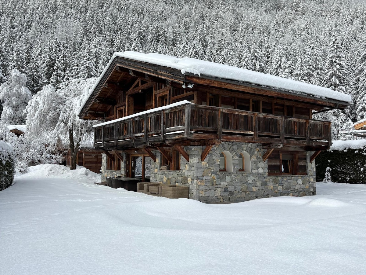 Chalet med udsigt over Mont Blanc og have