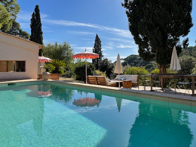 Idyllisk beliggende villa i rolige omgivelser, i et lukket område på den franske riviera, med panoramaudsigt over Middelhavet. Nyd udsigten, og find ro i sindet på det spektakulære poolområde med 12x6 meter opvarmet pool og barkøkken. Villa Le Trayas Supérieur har en stor have med mange idylliske områder. Måltider kan nydes i havens grillområde ved det primære indendørs køkken. La Figuerette sandstrand med hyggelige restauranter, barer og vandsport i bugten under villaen.