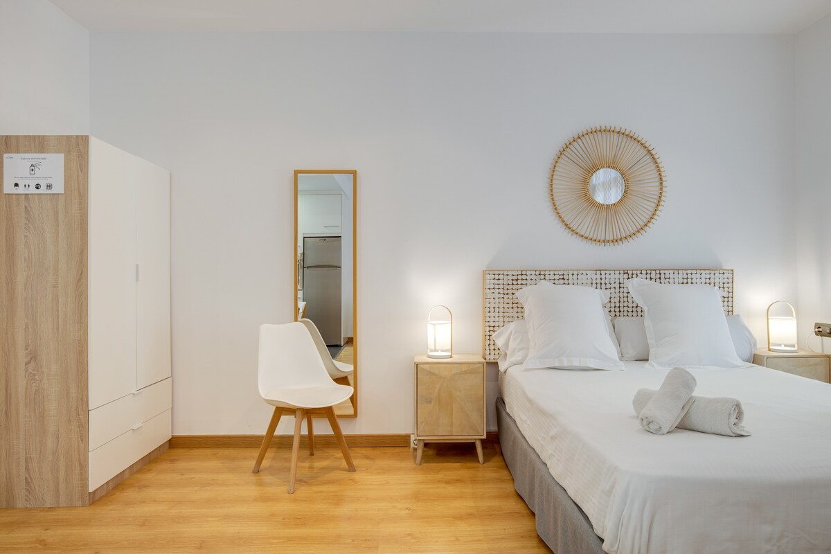 Særlig. 🏡✨Spektakulær 60 kvadratmeter stor lejlighed, nyrenoveret, med en afslappende og romantisk atmosfære 💛 Udstyret med alle faciliteter. Kan rumme 4: 🛏️ Master-soveværelse med dobbeltseng (150x190 cm) 🛌 Andet soveværelse med to enkeltsenge (90x190 cm) Lige ved siden af Sagrada Familia🏛️ Meget godt forbundet med offentlig transport 🚌