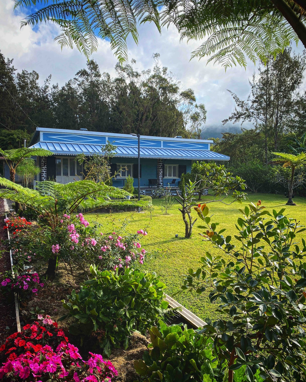 Velkommen til vores varme chalet på 70 m2, der ligger 1200 m over havets overflade på Plaine des Cafres. Nyd en stor blomstret og skovklædt grund på 1000 m2, en opvarmet pool og en fugleperspektivudsigt over Det Indiske Ocean og den majestætiske Piton des Neiges. Vi bor også på stedet, og Mikilati vil med glæde tilberede gode retter og morgenmad til dig ved reservation eller dele vores lokale tips. Ideel til vandreture til vulkanen, Grand Bassin osv...