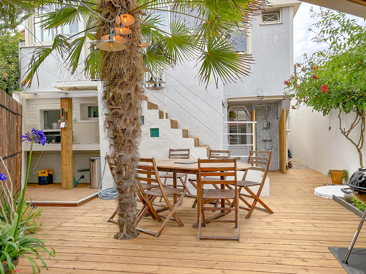 Velkommen til vores feriebolig, der er fuldstændig renoveret og ideel til at være vært for forældre og børn eller venner. Vi ønskede, at det skulle være varmt og funktionelt for vores familie på seks børn. Du kan gå (eller cykle, hvis du vil) til stranden "Port Meleu" (6 minutters gang), butikker (bagerier, supermarked, det mytiske "Grand Bazar" og dets individuelle slik), restauranter, bibliotek, biograf, tennisklub...