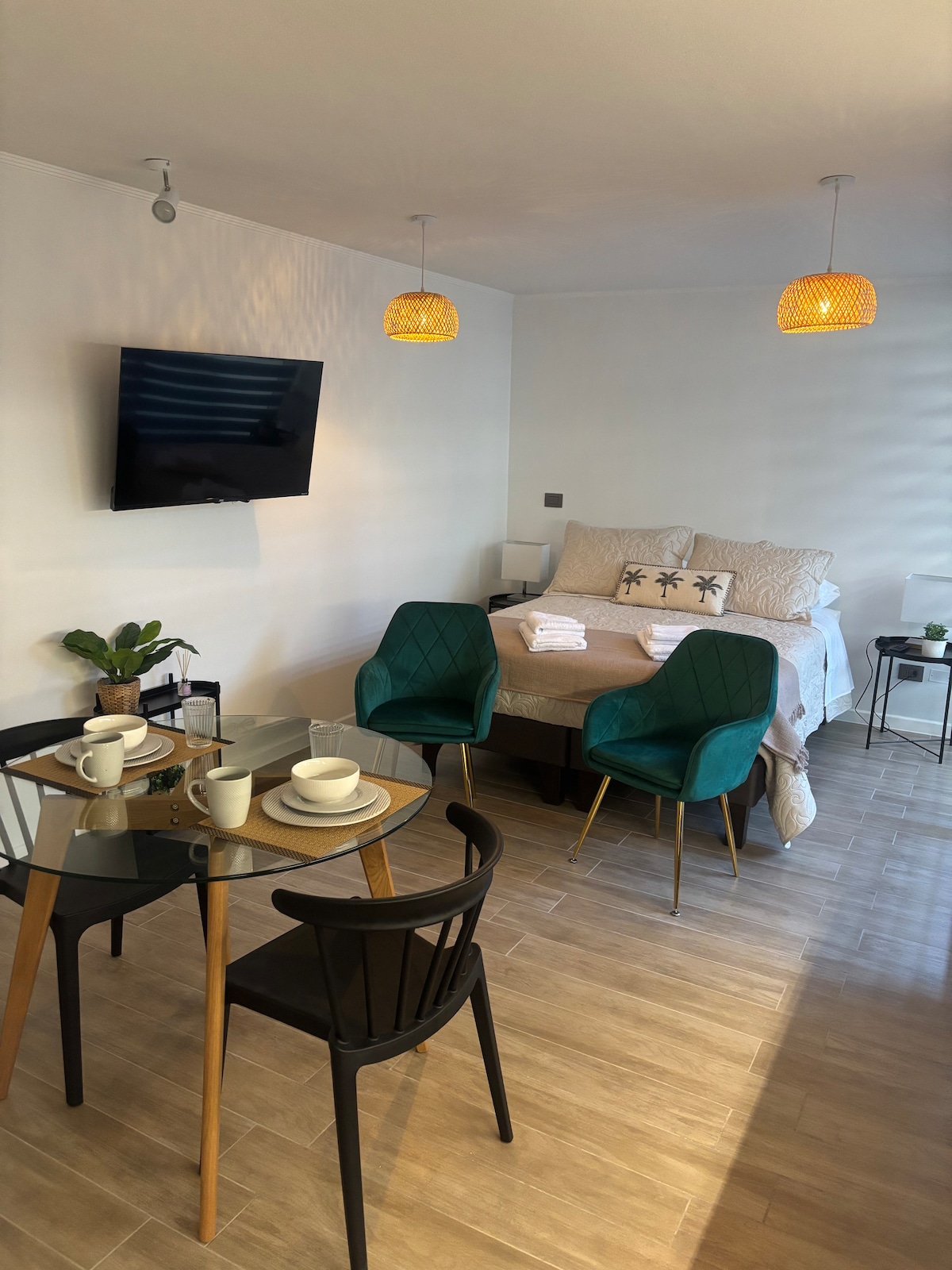 Nyd et uforglemmeligt ophold i vores smukke lejlighed! Fuldt udstyret, med Wi-Fi (perfekt til fjernarbejde), fuldt udstyret køkken, hyggeligt værelse og privat parkering inde på stedet. 📍 Beliggenhed: 8 minutters gang fra Ñuble-metroen (linje 5 og linje 6). 🛏️ Kapacitet: Op til 2 personer ✨ Faciliteter: Wi-Fi, tv, Netflix, sengetøj, håndklæder, køkkengrej og meget mere. Dit hjem væk hjemmefra venter på dig!