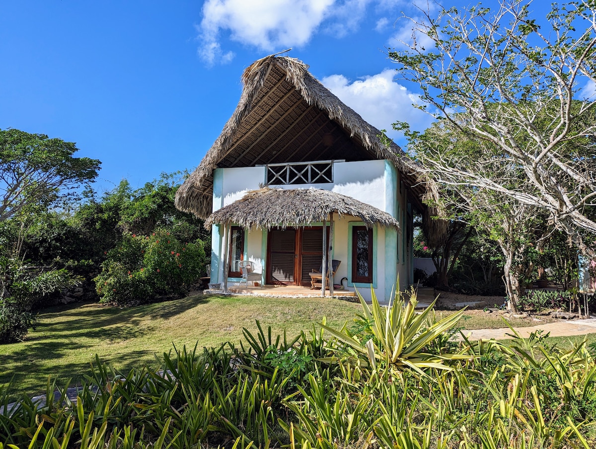 Nyd roen. Læg dig til at sove til lyden af havet, som det ses foran din storslåede hytte. Havet og fuglene, der ligger i velplejede haver, er alt, hvad du hører, mens du nyder at kommunikere med naturen. Catering til måltider kan også være tilgængelig på stedet, eller en fantastisk restaurant er kun en kort gåtur væk. Slap af i de mange hængekøjer, svøm i poolen. Nyd livet... Naturligt. Opholdsområde over soveværelset med naturudsigt og havudsigt