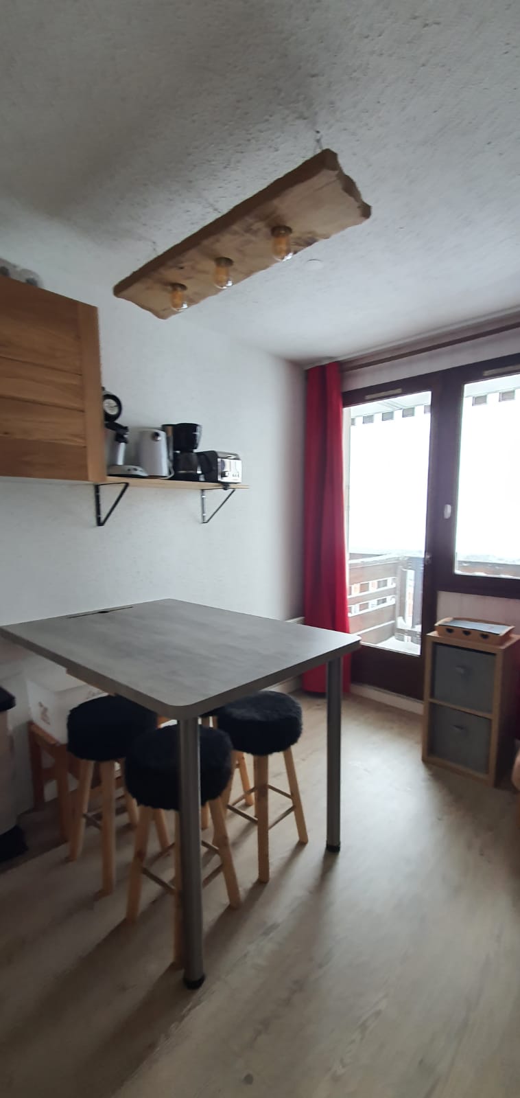 20 m2 studie Stueetage. Fuldt renoveret. 2 køjesenge 1 sovesofa 160. Sparer plads, så du kan bevæge dig rundt i studiet, når den er slået op. Udstyrret køkken med stor traditionel ovn ovn. Brusebad. Skovudsigt. 2 minutters gang fra pisterne. Skiopbevaring inkluderet i lejligheden. 5 minutter fra byens centrum (supermarked, ostebutik osv.) masser af opbevaring. Lejlighed beliggende i Résidence des Bouquetins (waze-notifikation)