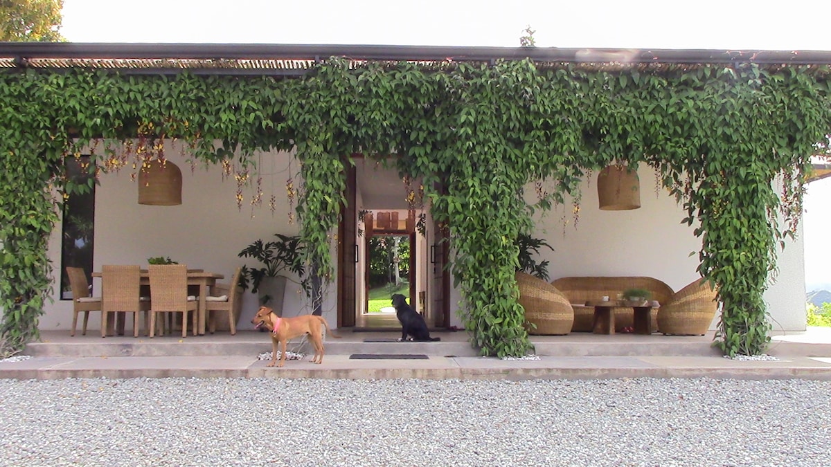 Come stay at our private, quiet and Bali style villa. This villa is located 10 minutes from the Armenia (El Eden International) Airport. This spacious villa is perfect for a group of traveling friends or a family looking for a peaceful stay. It includes 2 bedrooms (master suite includes bathtub, an indoor shower and an outdoor shower), living room (sofa bed), 2 and a half bathrooms, and 1 full-size family kitchen. We are part of La Granja Ecohotel where you can find activities and restaurant.
