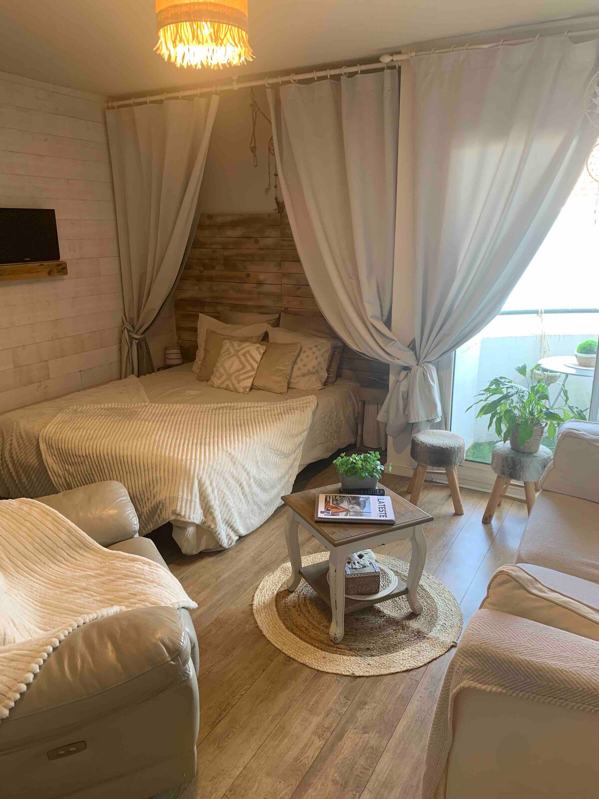 Hyggeligt og fuldt udstyret studie, til 2 personer, beliggende i hypercenteret med overdækket marked og butikker, med en queensize-seng på 160, naturindretning ved havet, komplet og komfortudstyr, køkken, opvaskemaskine, induktionskomfur, ovn, vaskemaskine, italiensk bruser, stor indgangsskab, terrasse, havstrande og klitten 15 minutter væk. Mindre end 4 nætter. Der er ikke sengetøj og håndklæder. Mulighed for at leje et sæt for 15 € sengetøj og håndklæder at anmode om inden ankomst.