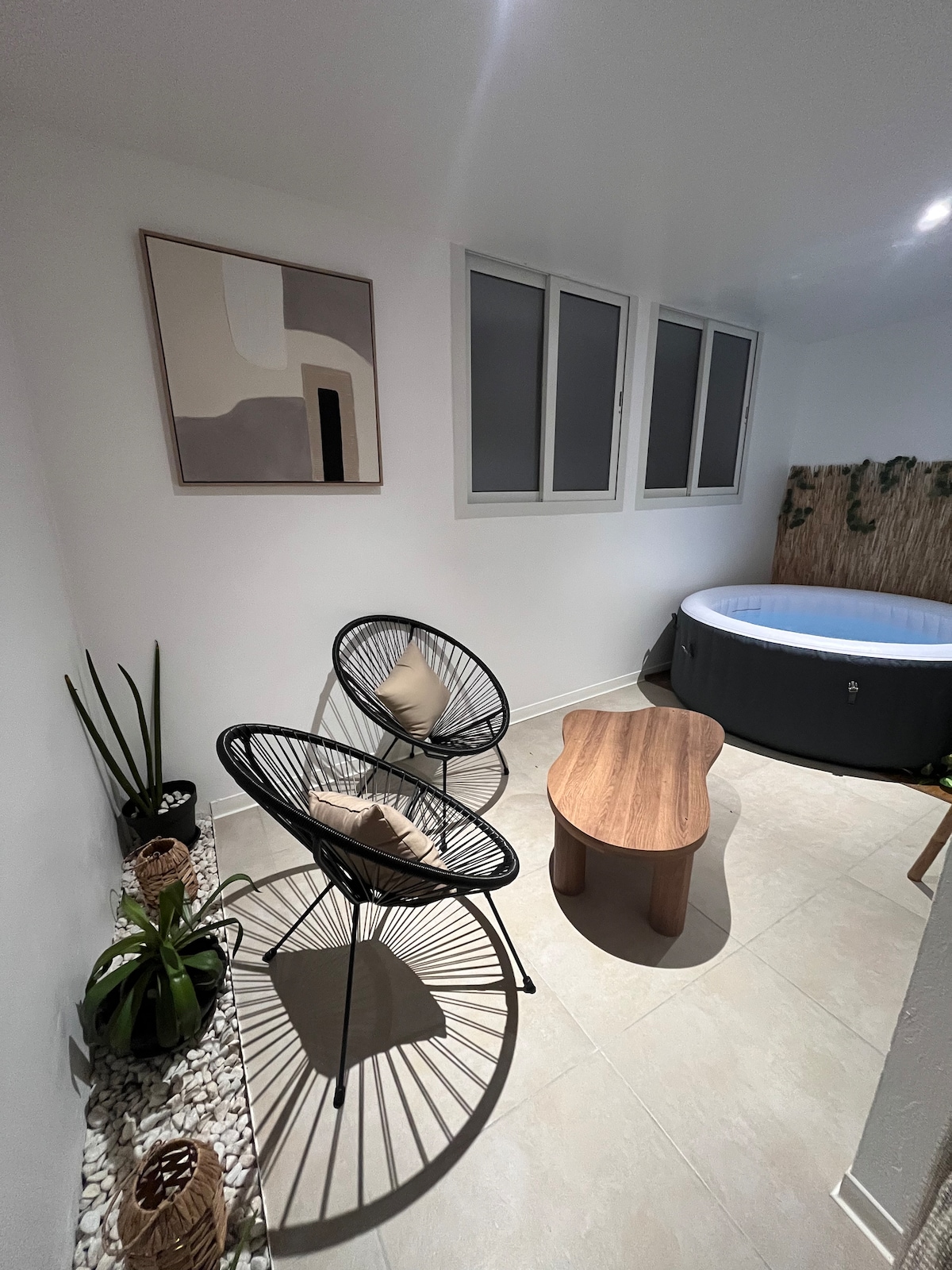 Tag på ferie for to i denne hyggelige, 33 m² store, mexicansk-inspirerede oase med privat spabad og udsigt over stranden. Dette lille fiskeridistrikt ved havet ligger i Tartane, hvor tiden ser ud til at stå stille. Her kan du nyde afslappende øjeblikke, gåture hånd i hånd og opdage vilde strande, restauranter, destillerier og vandrestier i nærheden. Ideel til et romantisk og foryngende ophold ved havet.