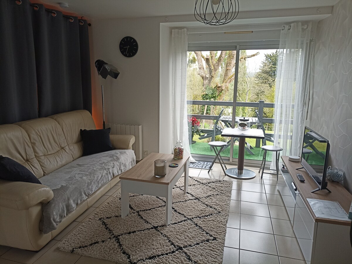 I en grøn og rolig omgivelse i et smukt slot fra det 15. århundrede, beliggende ved indgangen til vores smukke middelalderby Dinan, vil du bo i en loftslejlighed på 54m2 i stueetagen i hovedbygningen. Du vil opdage dens storslåede monumentale pejs og du vil blive fortryllet af denne autentiske bygning, der er fyldt med historie med alle moderne bekvemmeligheder i hjertet af en smuk 3 hektar park med sin dam kun 15 minutter til fods fra det historiske centrum eller 3 minutter med gratis bus.