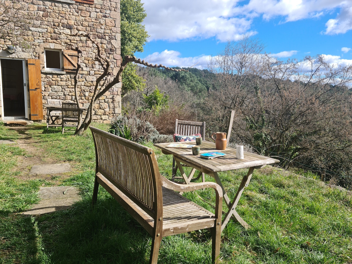 Denne charmerende studiolejlighed med drømmeudsigt ligger i hjertet af South-Ardeche. Smuk gammel atmosfære, komfortabel og smuk udsigt! Un petit coin de paradis. Om morgenen bliver du vækket af fårklokkerne og de muntre svaler. Bliv omfavnet af de grønne bakker og bjerge! Uanset om du vælger at slappe af eller aktivt gå ud og omkring, finder du her roen til at genoplade dit batteri. Studiet ligger 10 minutters kørsel fra Thermen i Vals les Bains.