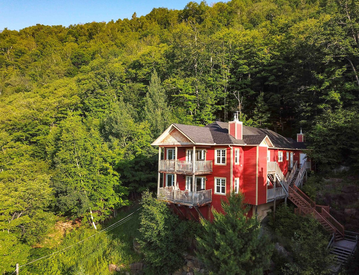 CITQ 300775. ★★★★★ TREMBLANT Central! Nyd en virkelig fængslende tid væk fra byen i dette fredelige feriehus med wi-fi. Slap af til flodens rislende lyd. Nyd den betagende udsigt over vand, fauna og flora. Føl dig milevis væk, men alligevel i din helt egen hyggelige hytte, direkte i det gamle Mont Tremblant, 0,5 km fra den lineære sti. 6 minutter til skisportsstedet. På floden la Diable, en berømt fluefiskeriflods; almindeligt fiskeri er også tilladt i vores område. Elbiler: Standard udendørs 120 V stikkontakt