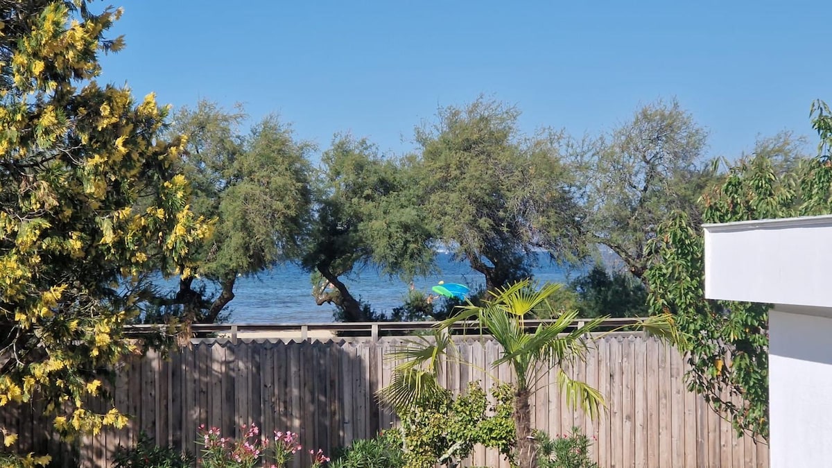 Træhus i udkanten af Lacanau-søen, stille og uspoleret bugt. Privat dock. Temmelig privat terrasse med adgang og søudsigt. Lys stue, 4 soveværelser, 2 badeværelser, vaskerum, WiFi, LV, LL, SL, grill. Cykelsti foran huset. Vi tilbyder: Stand' Up paddle & Canoe/Kajak. Vandaktiviteter i nærheden: Kitesurfing, vandski, wakeboarding, wingfoil, windsurfing, katamaran... Lacanau Océan 5 km. Golf, tennis, ridning 3 km væk. LeTedey Camping Supermarket 800 m