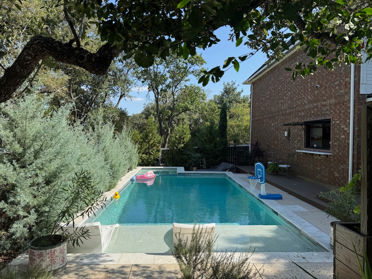 Denne smukt designede private bolig leverer den perfekte blanding af komfort, stil og beliggenhed. Det elsker gæsterne mest: – Indretning på designerniveau med eksklusive detaljer - Roligt, sikkert nabolag med naturstier, få skridt væk - Fuldt udstyret køkken + luksuriøst badeværelse med regnbruser og badekar – Madras + sengetøj af høj kvalitet – Højt til loftet + naturligt lys Gemt væk i et fredeligt kvarter, men alligevel 12 minutter fra Downtown, 15 minutter fra lufthavnen og 10 minutter fra Zilker Park & South Congress.