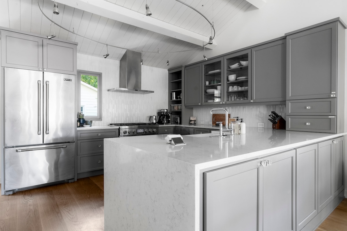 Slap af i et solrigt, moderne middelhavsinspireret hjem beliggende i Travis Heights i det sydlige Austin – et af de mest eftertragtede og unikke nabolag. Gå nemt til sjove restauranter, butikker og spillesteder på South Congress. Downtown Austin ligger kun 3 km væk. Få det bedste fra begge verdener — natteliv og et roligt hjem at komme tilbage til. Hold dig aktiv med en opvarmet pool året rundt (Big Stacy) og løbebane direkte på den anden side af gaden. Unge familier kan nyde legepladsen i nærheden af nabolagets pool.