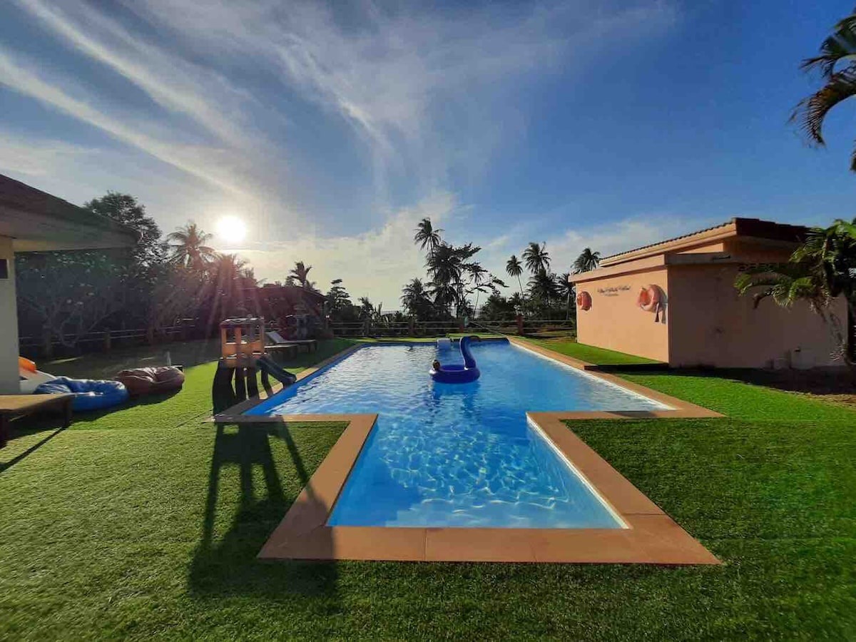Første stop for at slappe af i et idyllisk rum, før du opdager Kho Chang "Sidste stop, før du tager hjem. 10 minutter fra Trat Lufthavn. Luksus private 28 personer hus med salt shlorinator swimmingpool. Du kan nyde din madlavning med stort køkken og grilljern. Lav en minimal poolfest i poolbarområdet. God søvn på dit private værelse med komfortabelt og hygiejnisk sengetøj. Byd din morgen velkommen med gratis morgenmad. Du kan bestille din middag på forhånd. (menu med fisk og skaldyr) : bed om menu fra værten
