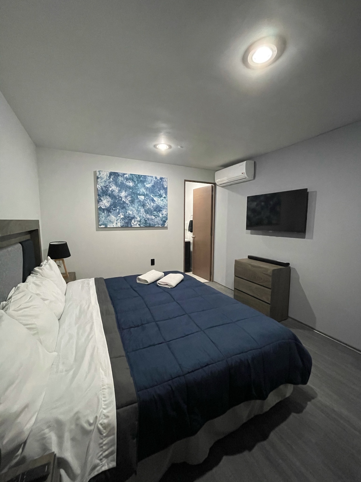 Det er et roligt, moderne, centralt, nyt og hyggeligt sted, hvor du kan tilbringe et fremragende kort eller langt ophold i den smukke by Zamora Boligen En uafhængig lejlighed med elektronisk lås for større komfort, som har alle faciliteter såsom AIRCONDITION, varmt vand, Netflix, højhastighedsinternet Bemærkelsesværdigt Kun 13 minutter fra centrum Sentura indkøbscenter 10 minutter væk Bodega Aurrera med BBVA hæveautomat 4 minutter væk Oxxo 4 minutter væk