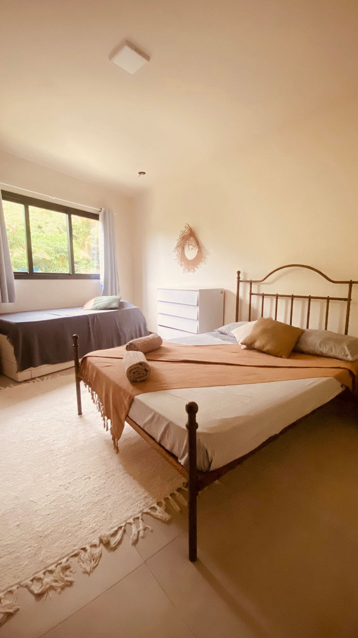 Hyggeligt hus i Praia da Barra de Ibiraquera, ideelt til familier og venner. Rigelig terrasse, balkon med grill og hængekøje. Værelse integreret med køkkenet. To soveværelser med aircondition (to dobbeltsenge + en ekstra enkeltseng). Vi accepterer kun små kæledyr. OPLYSNINGER OM BELIGGENHED Ibiraquera strand (500 m - 6 minutters gang) Mercado Padaria Ponto Certo (230 m - 3 minutters gang) Mercado Guimarães (350 m – 4 minutters gang) Restaurante Tartaruga (550 m - 7 min. gang)