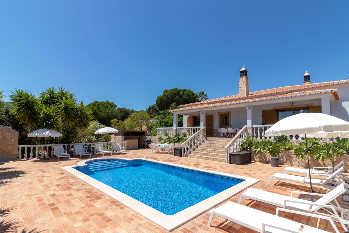 Fantastisk villa på landet, to minutter fra Armação de Pêra-stranden. Meget privat og rolig. Aircondition i de tre soveværelser. Grill til at grille dit eget kød eller fisk. Der er en stor swimmingpool, masser af træer og blomster i afslappende omgivelser. Du kan nyde solen i Algarve.