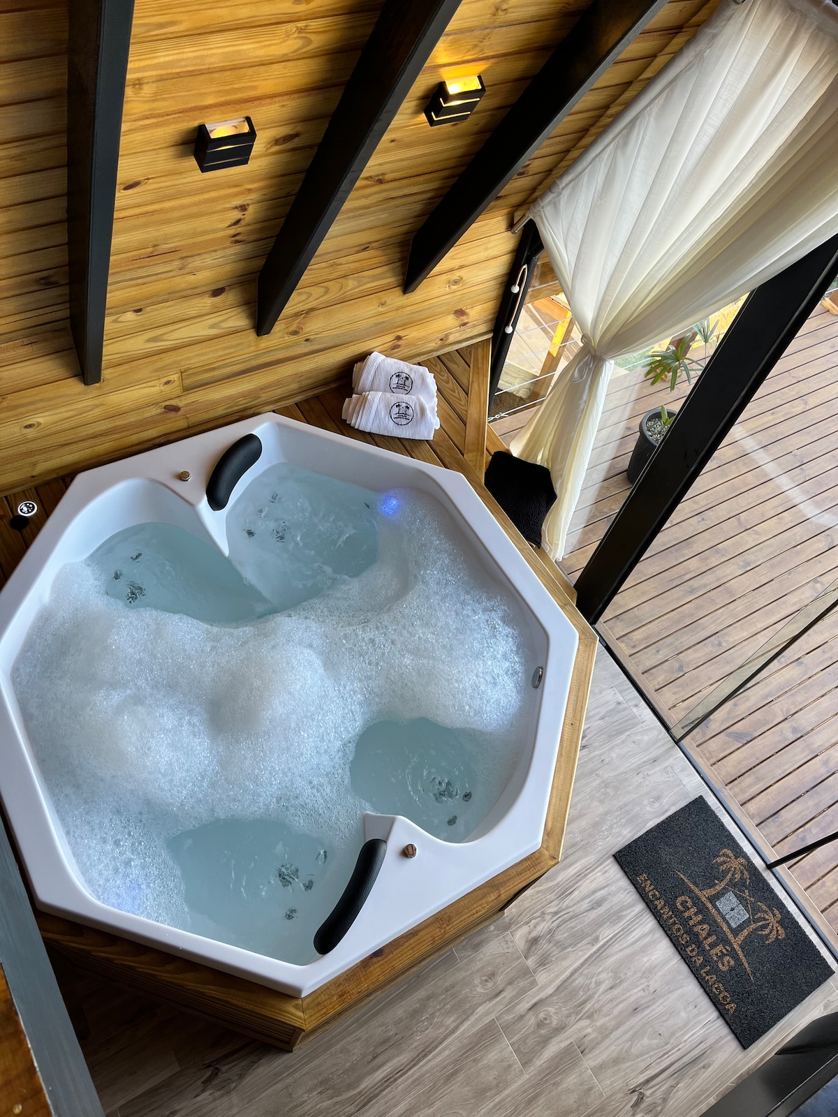 Oplev uforglemmelige øjeblikke i en hyggelig chalet, der er perfekt til dem, der søger hvile, komfort og kontakt med naturen. Med en dejlig udsigt over lagunen blev stedet designet til at give en unik oplevelse af afslapning og ro. Chalettet har et udstyret køkken, pejs, hyggelig stue, balkon med udsigt og et komplet fritidsområde: privat pool til at køle af i og kajaksejlads inkluderet.
