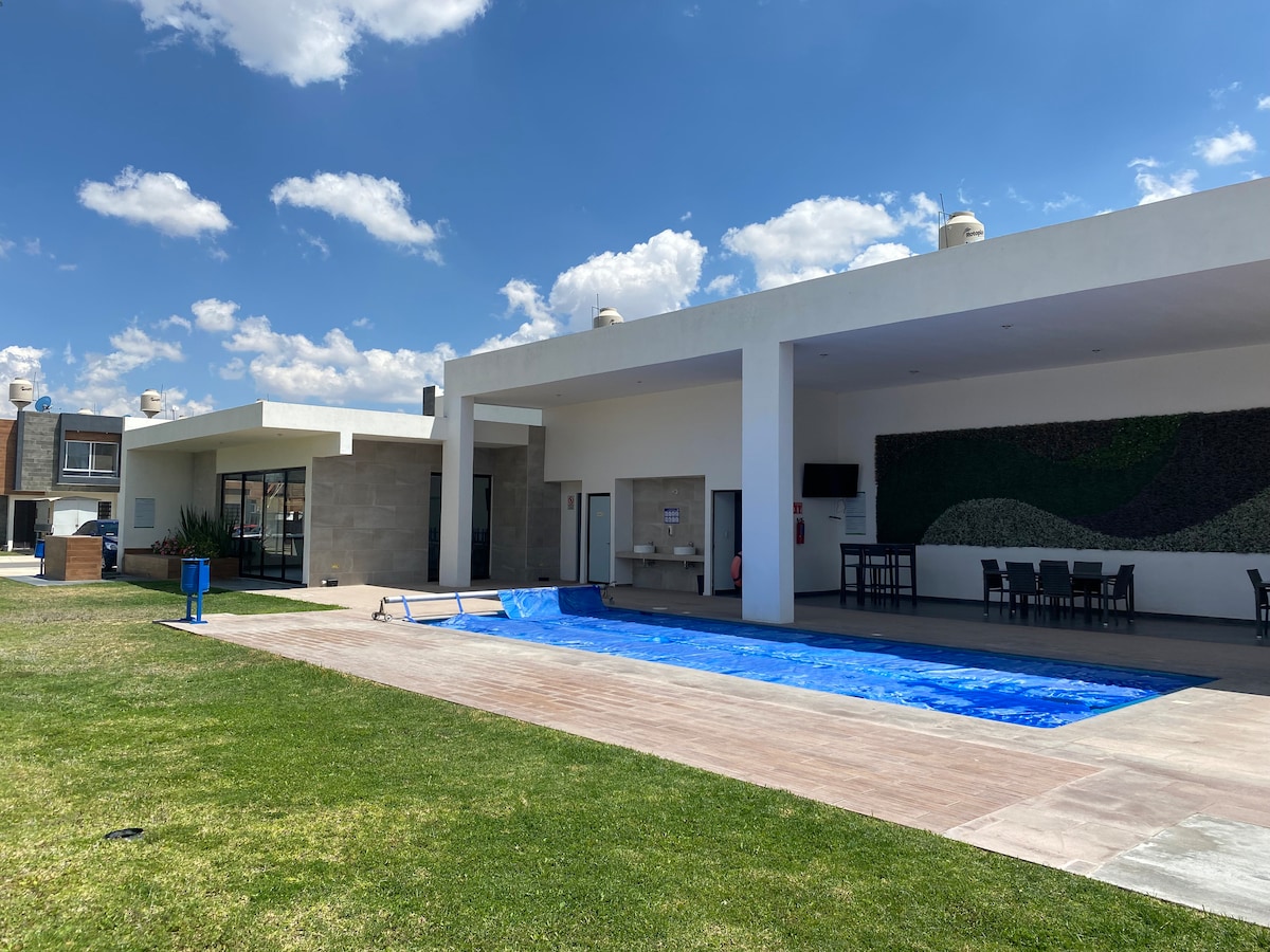 Enjoy a cozy stay in a space designed to make you feel right at home. Perfect for both leisure and business trips, this place offers a blend of comfort, great location, and tranquility. Located just 25 minutes from the city center and 10 minutes from the industrial zone. Getting here is easy, with quick access via two main highways: Highway 57 (SLP–QRO) and Highway 70 (SLP–Rioverde), making your arrival convenient from any direction.
