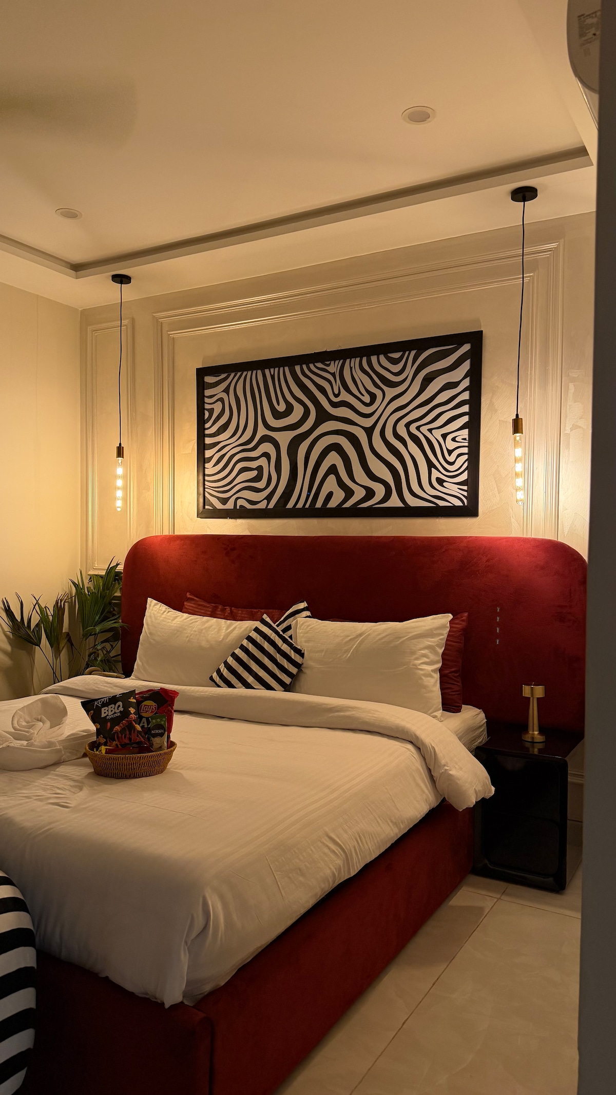 Vores 1 BHK Orbit Penthouse i DHA Phase 5 er stedet, hvor urban chic møder himmelsk cool. Tænk: En glødende månevæg til de sene selfies og et dristigt kunstværk med dollars, der skriger "hovedpersonens energi" Vågn op til udsigt over parken fra din private altangynge, se dine yndlingsserier på 50" 4K Smart TV, eller tilbered noget æstetisk i det fuldt udstyrede designerkøkken. Interiøret? Abstrakt, stilfuldt og lavet til feedet. Og du er lige ved siden af Lahore's hotteste spisesteder.
