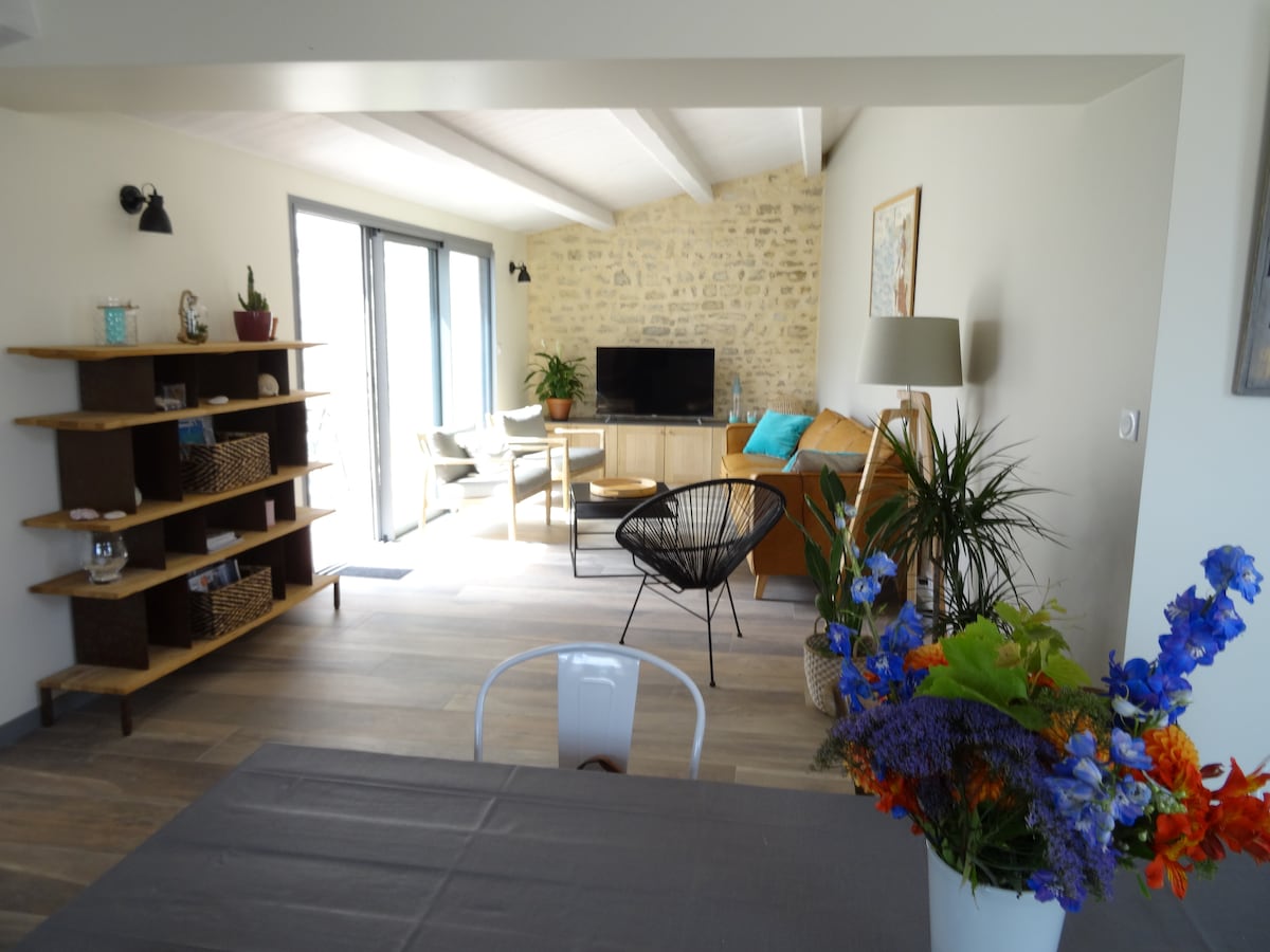 Le Nid des Spatules: din TILGÆNGELIGE freds oase i Vendée. Nyt hus på 62 m² + 30 m² sydvendt terrasse, der ikke er overset. Bedømt til 3 stjerner for 4 personer. PRM, turisme og handicap: kørestol, hørelse, mental, visuel. Aircondition. Wi-Fi. Stor stue, brusebad (8 m²), udstyret køkken. 2 private parkeringspladser, forstærket opladningsstik til elbil. Cykelsti for enden af gaden, cykeludlejning 3 km væk. Komfort garanteret!