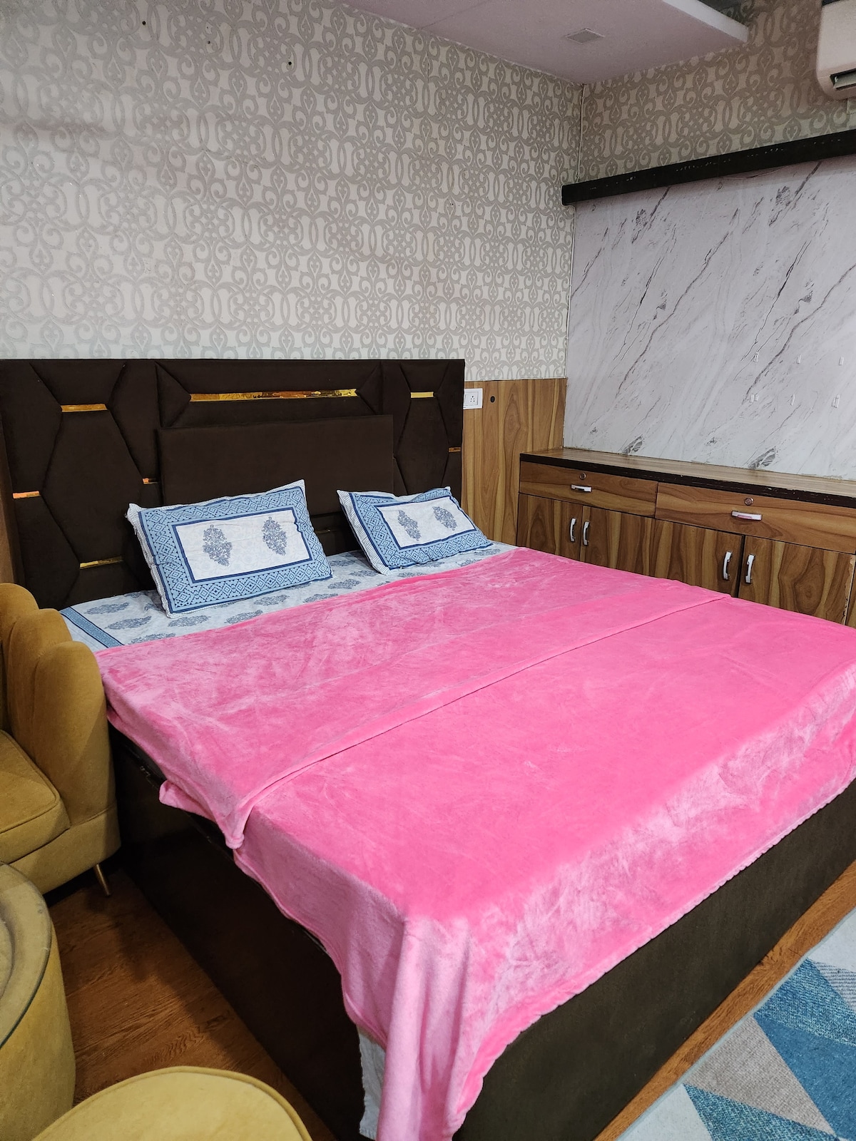 Forkæl dig selv med indbegrebet af raffinement i denne luksuriøse atelierlejlighed i hjertet af det sydlige Delhi i Saket. Beliggende i en førsteklasses beliggenhed, kan du nyde et smagfuldt møbleret rum, komplet med luksuriøs indretning og masser af naturligt lys. Med en kingsize-seng, stort 43" smart-tv, fuldt funktionelt spisekammer og et stilfuldt badeværelse, er hver detalje tilpasset en raffineret livsstil. Fordyb dig i komfort og bekvemmelighed. Velkommen til en blanding af luksus og byliv