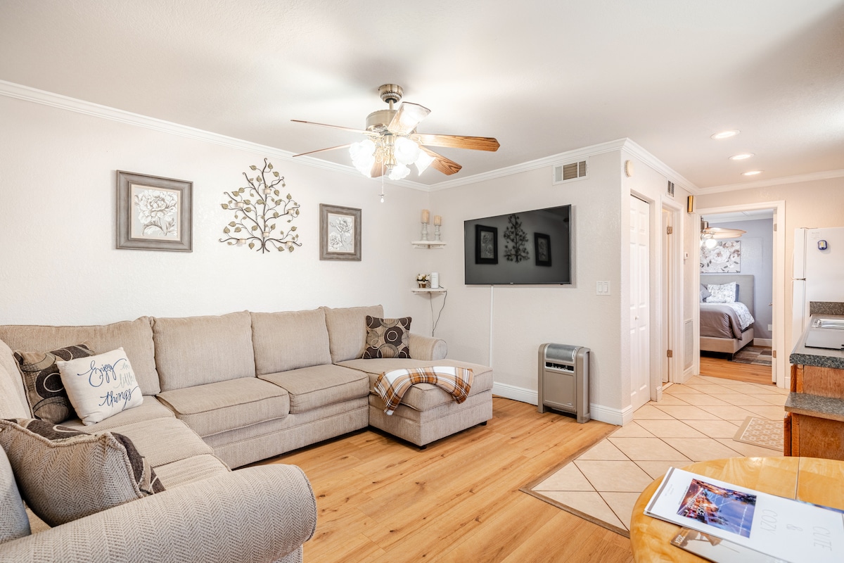 Tag på ferie i vores hyggelige lejlighed med 1 seng og 1 badeværelse, der ligger perfekt ved siden af hovedhuset, men alligevel er helt privat. Uanset om du søger en romantisk ferie for par, en produktiv arbejdsrejse eller noget velfortjent "mig-tid", har dette sted det hele! Efter en spændende dag udenfor kan du slappe af i vores komfortable bolig, slappe af og få ny energi. Med tildelt parkering kan du komme og gå med lethed!