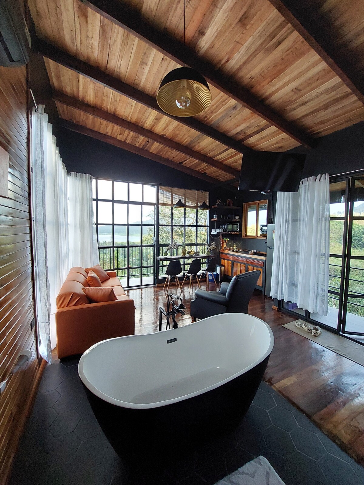Beliggende midt i en frodig regnskov. Føl dig hjemme i vores rummelige frirum, hvor vinduer fra gulv til loft udvisker grænserne mellem inde og ude og omfavner dig i naturens varme favn. Forkæl dig selv i vores naturlige svømmehul, slap af i vores spabad, find zen i vores yogarum, og nyd grillglæder i vores overdækkede udendørs cabana-område. Stress smelter væk i regnskovens ro, og du oplever essensen af pura vida sammen med os. Afslapning, eventyr og forbindelse venter.