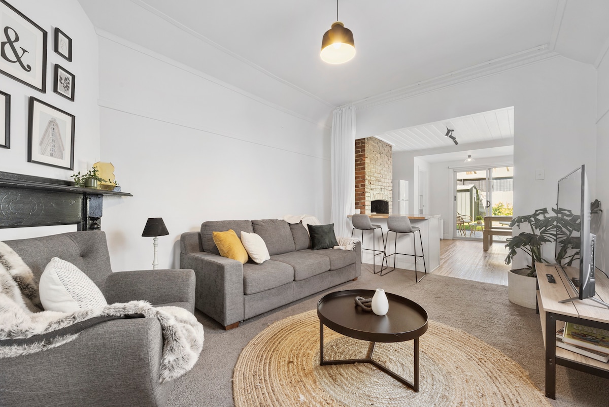Beliggende i en Leafy gade i et smukt kulturarvskvarter ligger dette stilfulde hjem væk hjemmefra, en sand skjult perle med alt, hvad du har brug for til et afslappende ophold, kun 5 minutter fra hjertet af byen. Indenfor kan du nyde solfyldt stue med en sovesofa, et fuldt udstyret køkken, et rummeligt soveværelse med queensize-seng og et stort karnapvindue, et overdådigt badeværelse og en charmerende lille terrasse. Bo inden for gåafstand til Coles, togstationen, byens centrum og utallige madmuligheder.