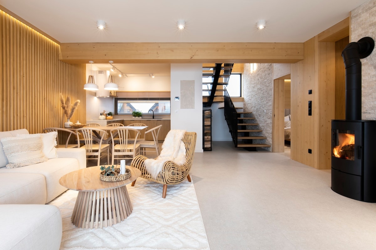Lost Road House er en moderne oase med adgang til bjergene lige uden for døren. Perfekt beliggende mellem Tatra og Pieniny-bjergene på den polske Spisz. Det er det perfekte sted at sætte farten ned, komme i kontakt med naturen og se bjergene fra solopgang til solnedgang. Stuen med køkken er fuldt udstyret og klar til at bo sammen. Hvert soveværelse har en komfortabel seng med luksuriøst sengetøj og vinduer fra gulv til loft med en fantastisk udsigt over Tatraerne. Wi-fi/Mocca Master/80 m2 terrasse Du er inviteret