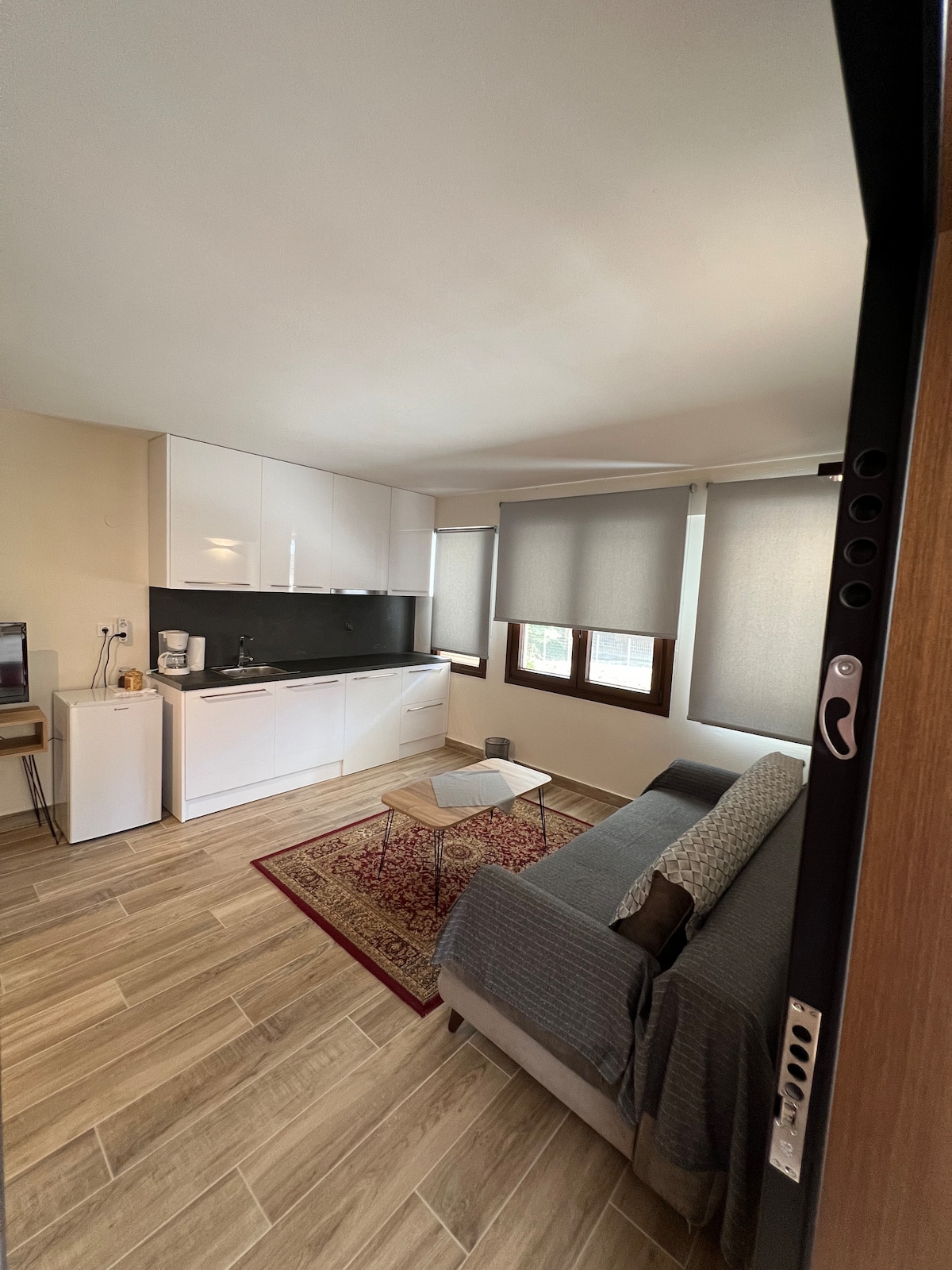 Lille og smukt studie i et roligt boligområde i centrum. Alt inden for gåafstand. Beliggende ved siden af et supermarked og butikker. Wi-Fi. Smart-tv. Netflix. Satellit-tv. Ideelt, uanset om det er til arbejde eller ferie. En lille og sød lejlighed beliggende i et roligt og sikkert område i Ioanninas centrum. Alt i gåafstand. Supermarked, konditorier, restauranter i nærheden. WIFI. Smart-Sat TV. Netflix Et ideelt sted til en forretnings- eller ferierejse.
