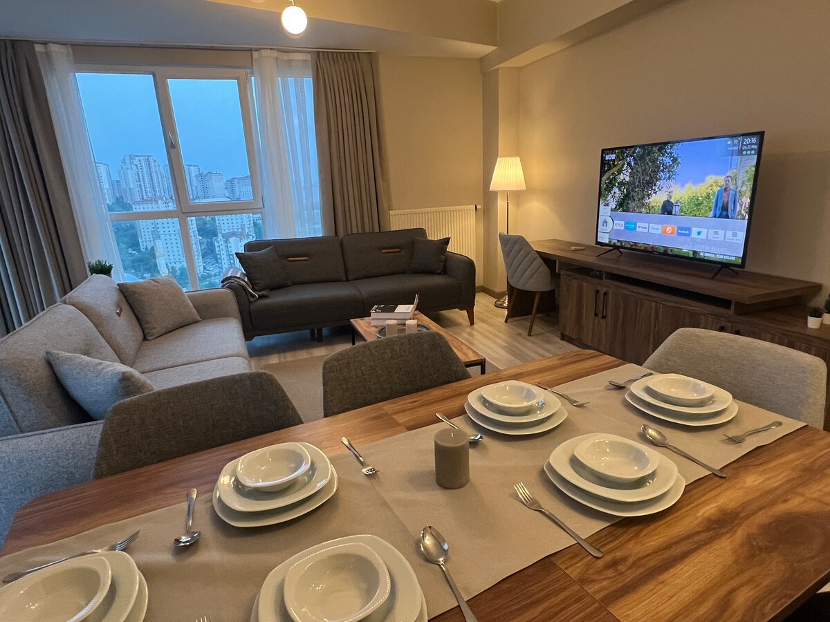 Det er det bedste sted at slappe af og nyde dit ophold. Hyggelig, stilfuld, naturligt oplyst lejlighed på 16. etage med en stor balkon, hvor du kan slappe af og nyde dit ophold, mens du kigger på den fantastiske by Istanbul og den store sø.
