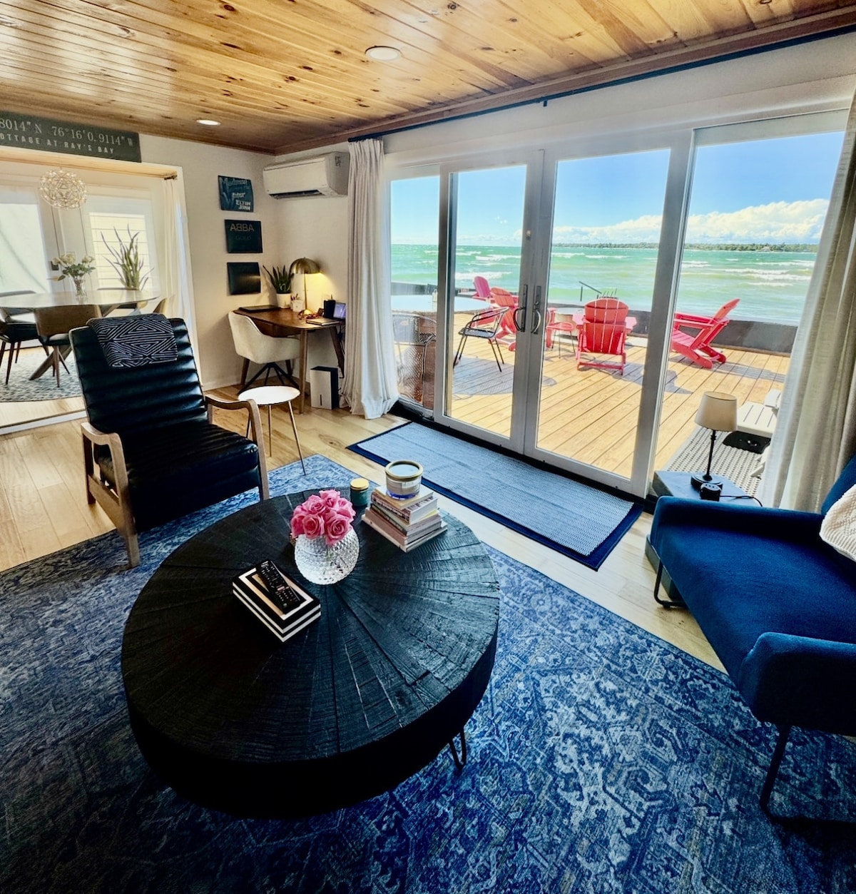 Welcome to waterfront Lake Ontario getaway — a year-round waterfront cottage designed for total relaxation and comfort. This 3-bedroom, 1-bath retreat with 2 king beds and 1 queen bed, making it perfect for couples, families, or small groups seeking a peaceful escape. Step inside and unwind by the fireplace, then step outside to your private deck overlooking the water. Whether you’re sipping coffee at sunrise or soaking under the stars in the 8-person hot tub, every moment here feels special