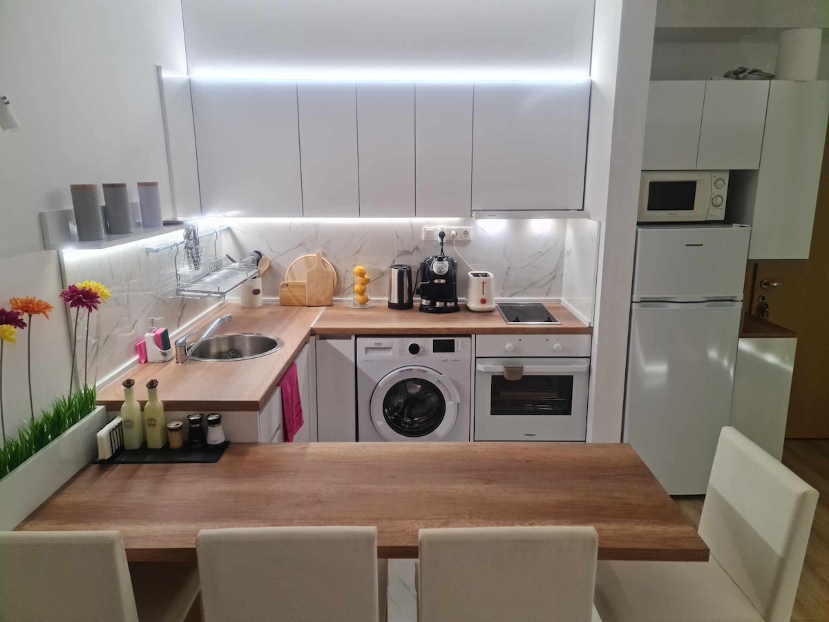 Modern and cozy apartment in the center of Burgas, just 5 minutes (350 m) from the beach. Features a stylish bedroom with soft lighting, a comfy sofa, smart TV, air conditioning, and fast Wi-Fi. The kitchen is fully equipped with a stove, microwave, fridge, and dining area. The bathroom is fresh and functional. Apartment located near restaurants, shops, and transport — perfect for a beach getaway, romantic stay, or working remotely.