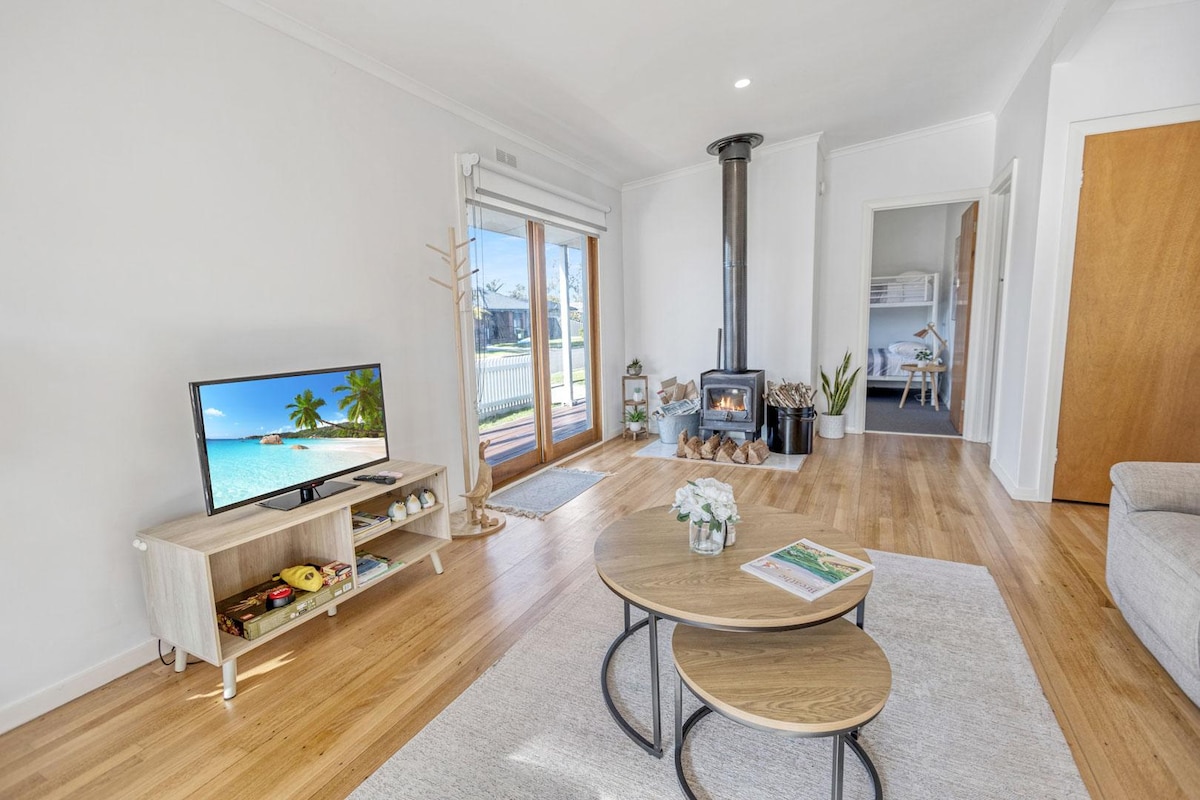 Vores nyrenoverede feriebolig ligger kun et stenkast fra havet og tilbyder den perfekte blanding af udsigt, komfort og kystcharme. Med det store soveværelse og to badeværelser kan du se og høre bølgerne, der bryder på sandet. Fredfyldt, rummelig, smukt indrettet med en lukket gårdhave for at sikre, at din pelsede ven har et sikkert sted at lege. Tag en af to stier direkte fra hovedporten til stranden, og kun 600 meter gang til The Lake Tyers Beach Tavern & General Store.