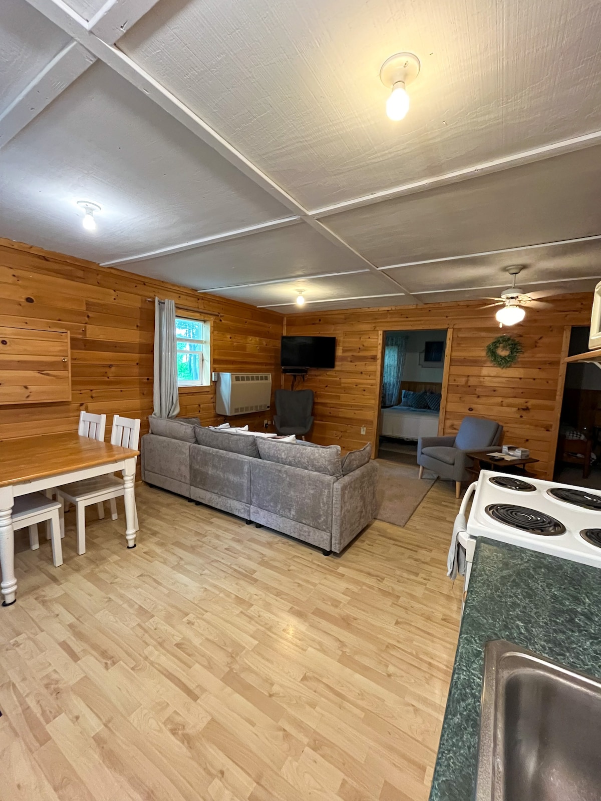 Din private smuttur nordpå! Fuld renovering hele vejen igennem gør dette til en rolig og afslappende, men moderne flugt. Nyd et varmt bad i jacuzzien, få noget kaffe i det smukke brugerdefinerede køkken med SS-apparater, og nyd en film foran den elektriske pejs. To komplette soveværelser og badeværelser for fantastisk privatliv. Udforsk det lokale landskab om dagen, og sid rundt om bålet om natten! Du finder ikke noget så fredeligt uden at ofre de moderne basisting. Fiberinternet også!