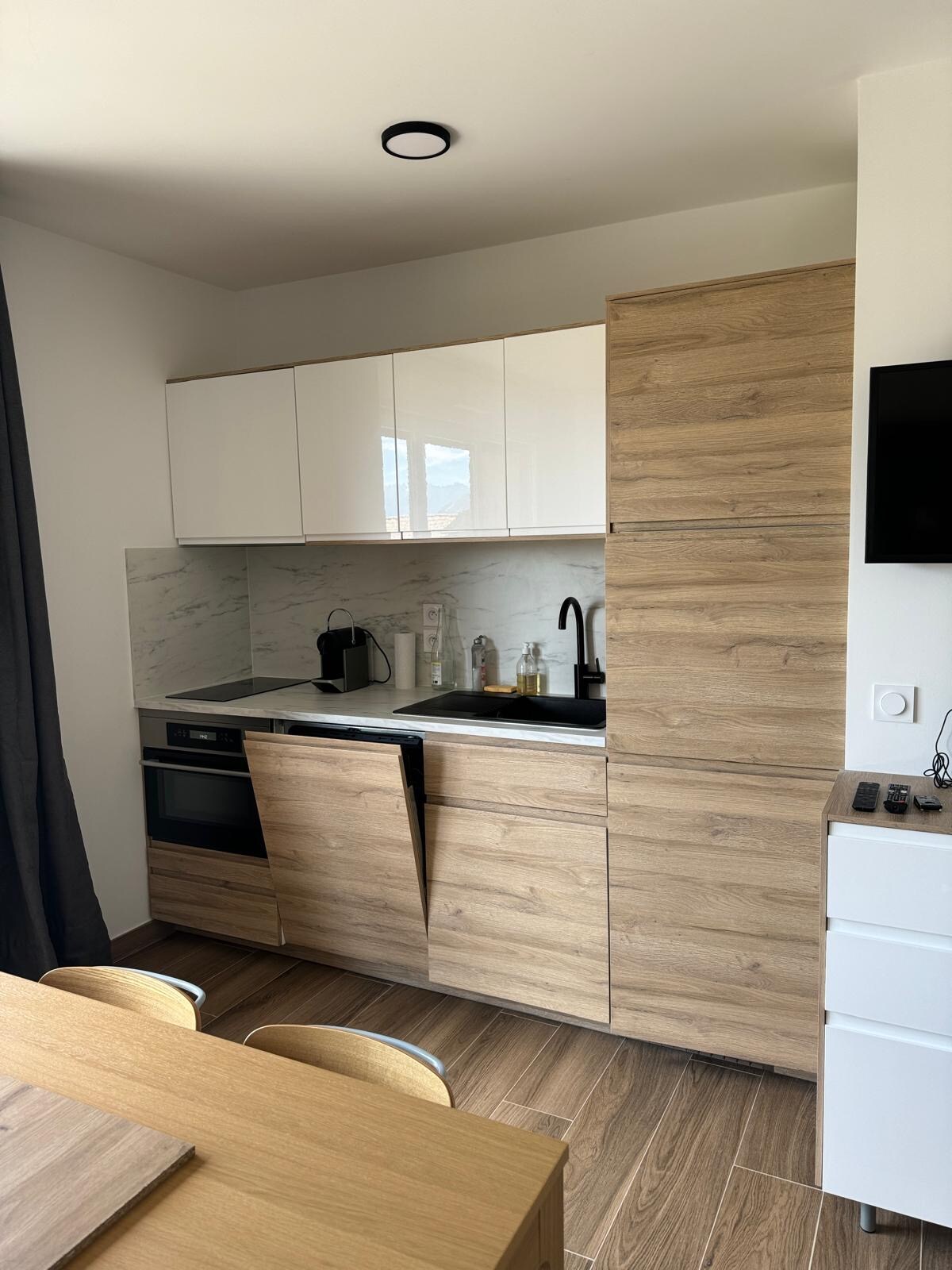 150 m fra pisterne og tæt på svævebanen, alt er til fods, der er ikke behov for en shuttle eller for at tage bilen. Studio 5 senge: 140 x 190 seng, 140 x 190 sovesofa og 90x190 hems. Træindretning i bjergstil. Fuldt udstyret: TV, opvaskemaskine, ovn og mikrobølgeovn, køleskab, raclette, fondue, pandekage, kaffemaskine, Nespresso. Badeværelse med badekar, separat toilet. Skiskab 5 minutter fra det opvarmede poolområde og balneo. Superette ved foden af bygningen.