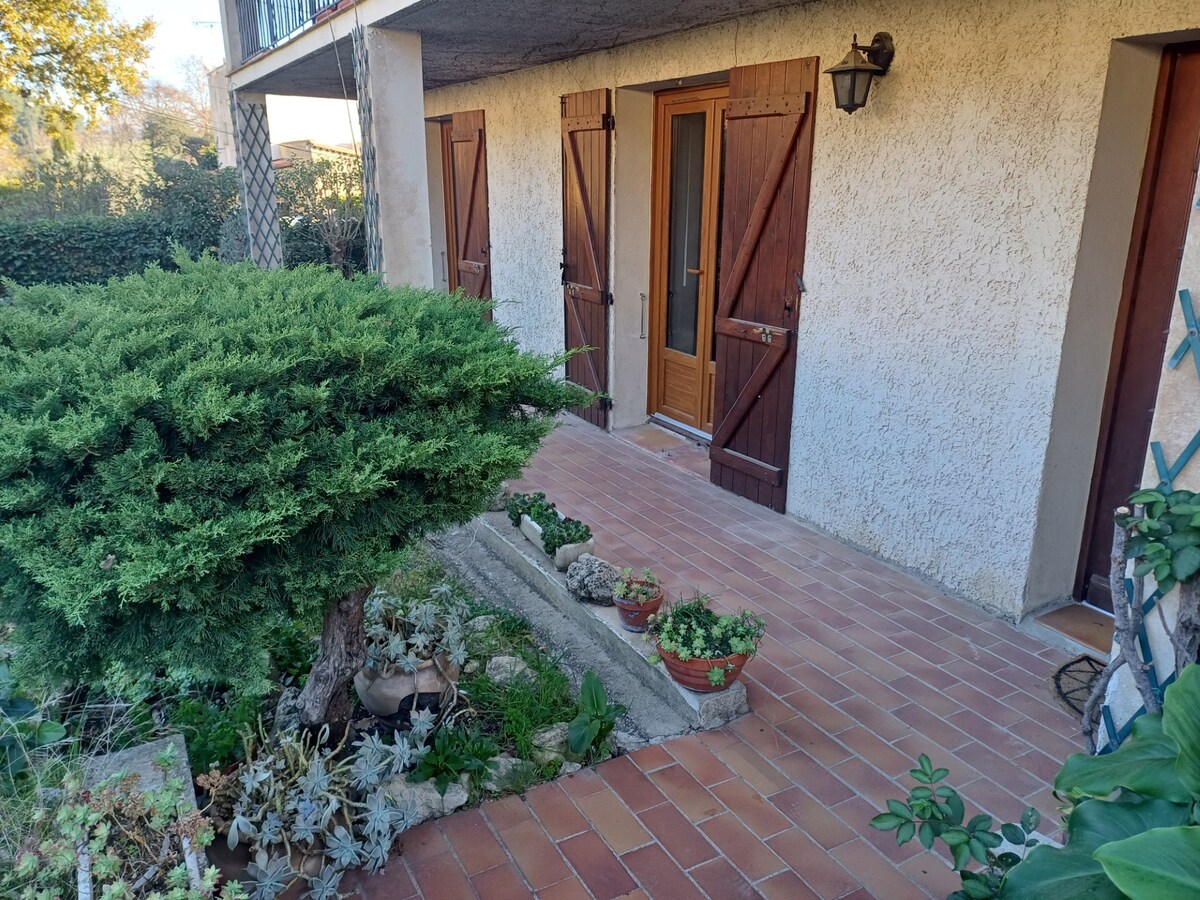 La Bastide des Amandiers byder dig velkommen til L'Appart, en dejlig hytte til 2 personer (37 m2), beliggende på øverste etage i hovedbygningen med en uafhængig udendørs indgang. Du vil også have et lille privat sommerkøkken i haven samt to liggestole. Vi har to andre hytter på vores ejendom, hvor vi byder folk, der leder efter fred og ro, velkommen. Der er ikke opsat liggestole for at bevare alles privatliv.