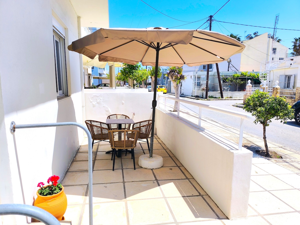Stay in the heart of Kos! Just 100 meters from the beautiful sandy beach of Lambi and 400 meters from Kos Town and the lively harbor, Elena’s newly renovated studio is the perfect base for couples or solo travelers. Bright and stylish with cool tones and charming decor, this cozy studio offers: Fully equipped kitchen, Washing machine, Smart TV ,Fast Wi-Fi , Air conditioning for your comfort. If you want to relax by the sea or explore the island, this location has it all!
