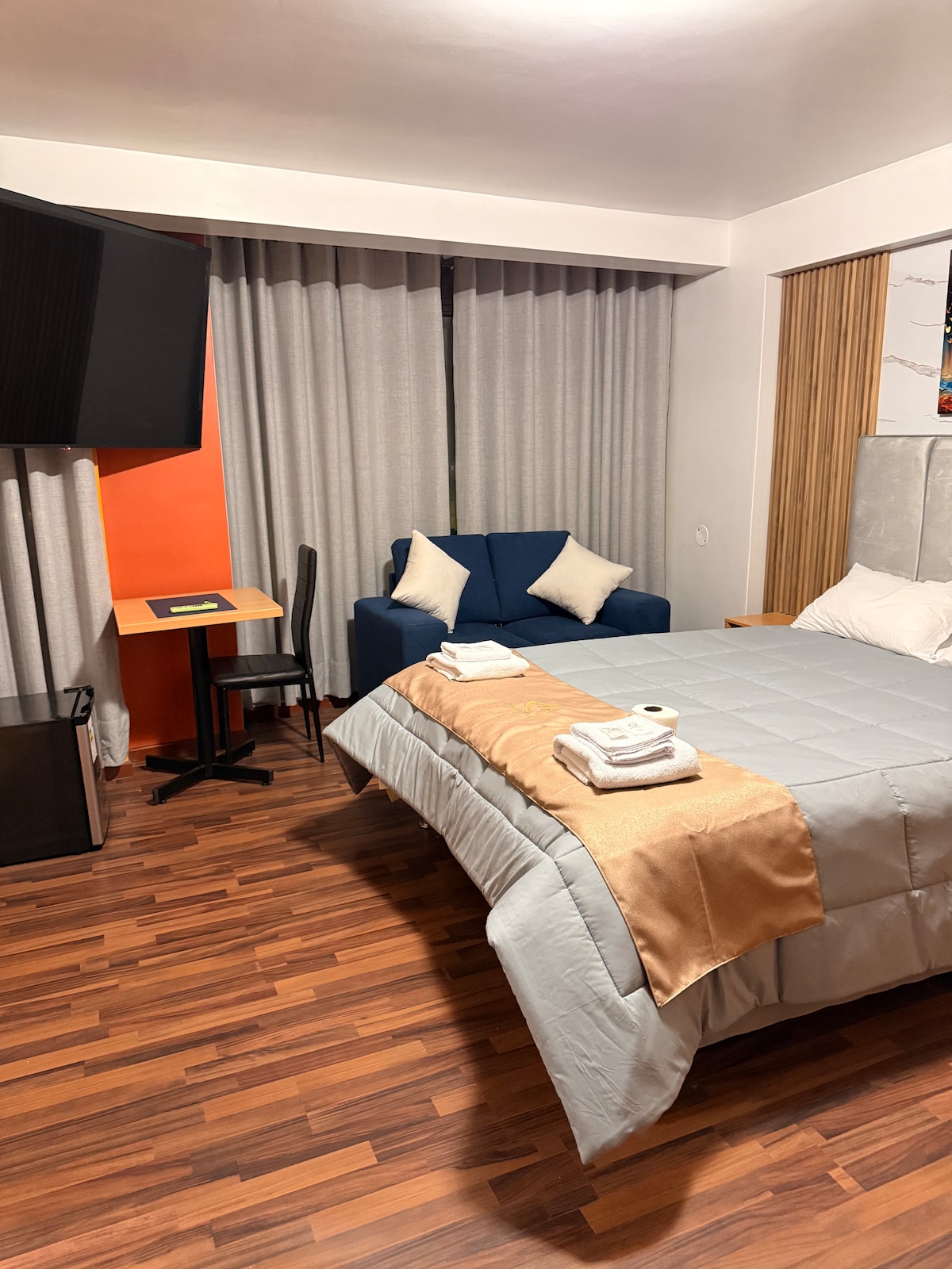 Disfruta de una estadía única en este departamento nuevo, moderno y elegante en Juliaca. Diseñado para brindar máximo confort, tranquilidad y estilo, es el espacio ideal para descansar después de un día de trabajo o viaje. Cada detalle ha sido cuidadosamente pensado para ofrecerte comodidad, calidez y una experiencia premium.