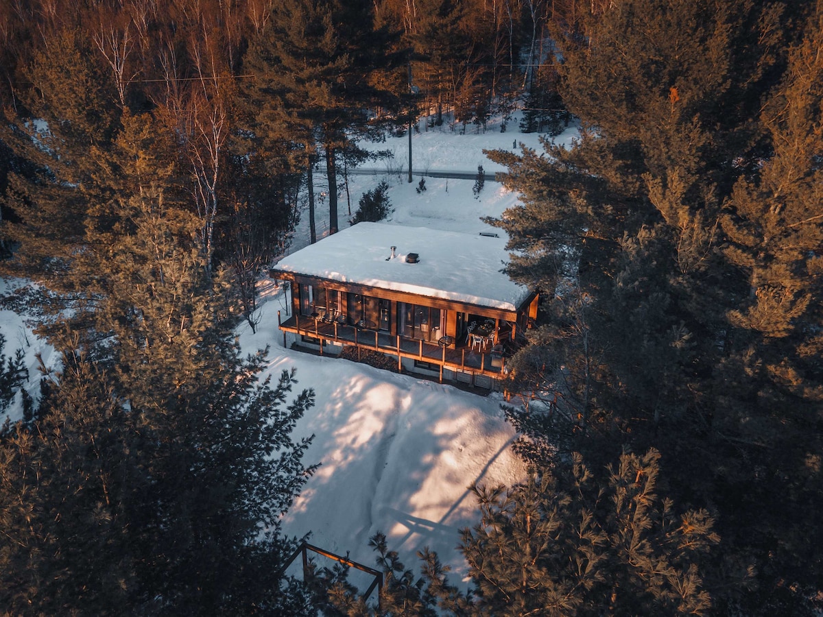 Chalet de type scandinave à Lac-Supérieur, Qc. CITQ# 300328 Situé à 300 mètres du magnifique Lac-Supérieur, ce Spahaus est une combinaison parfaite de la nature en raison de son emplacement en forêt et de sa modernité avec ses magnifiques espaces ouverts intérieurs, son jacuzzi extérieur, son sauna intérieur et bien plus encore! - Situé à 7 minutes de la station de ski Mont-Tremblant Versant nord. - Situé à 20 minutes du village Mont-Tremblant.