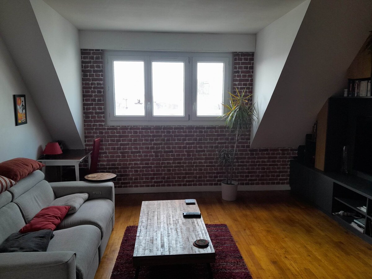 Hyggelig og rolig lejlighed med balkon, tæt på centrum. Et skridt fra både Quai des Indes og peristylen. Perfekt til at nyde den interkeltiske festival. Eller til at slappe af nær Lorient-kysten. 1 km fra banegården til fods Lejligheden er fuldt udstyret (nyrenoveret). 2 soveværelser (en seng 160*200, en anden 140*190) Wi-Fi, tv Vaskemaskine